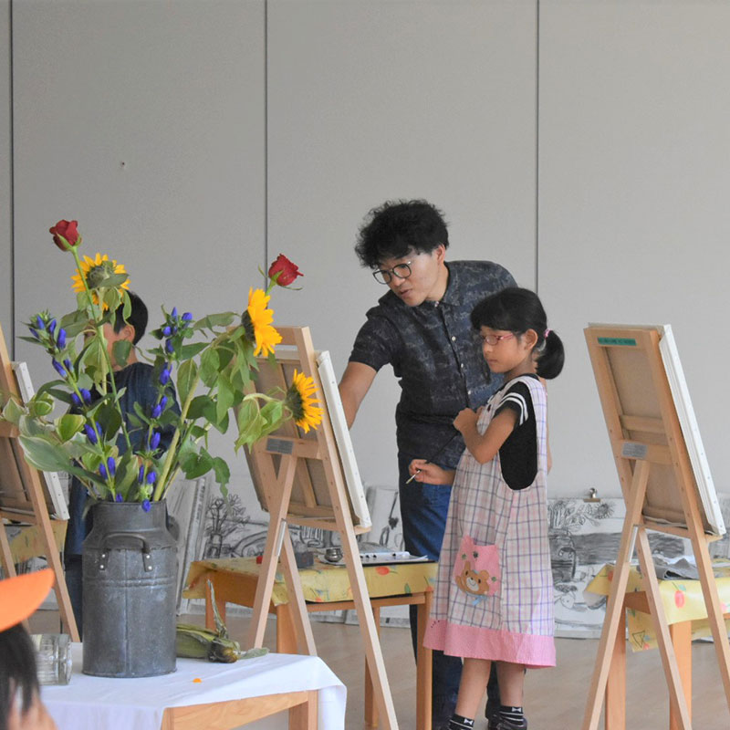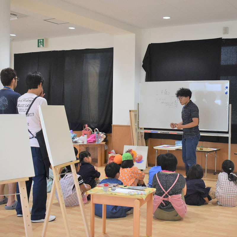 在園児はもちろん、卒園児や大人対象のものまで、幅広く行っています。基本的に不定期開催ですが、デッサンなどアカデミックな制作から、廃材制作まで楽しめますよ!